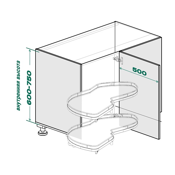 Комплект полок левый, Леманс 500 мм, Арена ПЬЮР, 2 полки + рычаги, цвет АНТРАЦИТ, цвет дна Антрацит, антислип (2603959846)